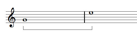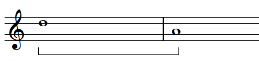 Fino ad ora abbiamo visto intervalli ascendenti. Ovviamente, esistono anche i casi in cui la seconda nota è più bassa della prima. In questo caso siamo dinnanzi ad un intervallo discendente, proprio come questo.